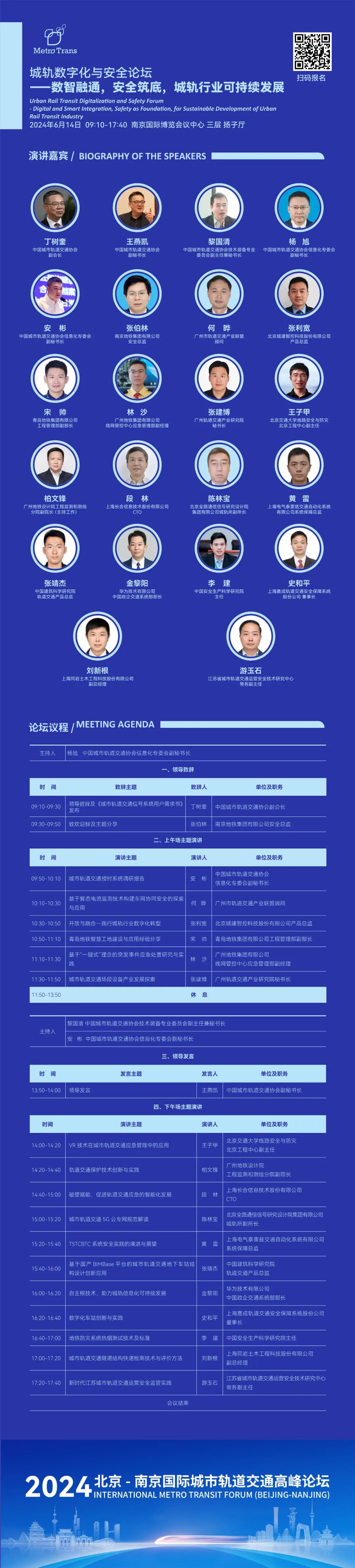 由中国城市轨道交通协会信息化专业委员会、安全管理专业委员会、技术装备专业委员会共同承办的“城轨数字化与安全”分论坛将于2024年6月14日(周五)9:10至17:40在南京国际博览中心(江苏省南京市建邺区江东中路300号)扬子厅举办。论坛以“数智融通,安全筑底,城轨行业可持续发展”为主题,聚焦城市轨道交通数智化、融合化、可持续发展,将邀请来自业主单位、协(学)会及行业企业的专家共同研讨交流,以促进城市轨道交通企业数字化转型,推动行业信息化创新,提升城轨行业安全水平,提高轨道交通装备自主研发能力。诚挚地邀请各相关单位单位参加本场论坛,共襄盛会!